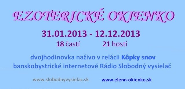 EZOTERICKÉ OKIENKO         31.01.2013 – 12.12.2013        18 – dvojhodinoviek naživo v Kôpkach snov